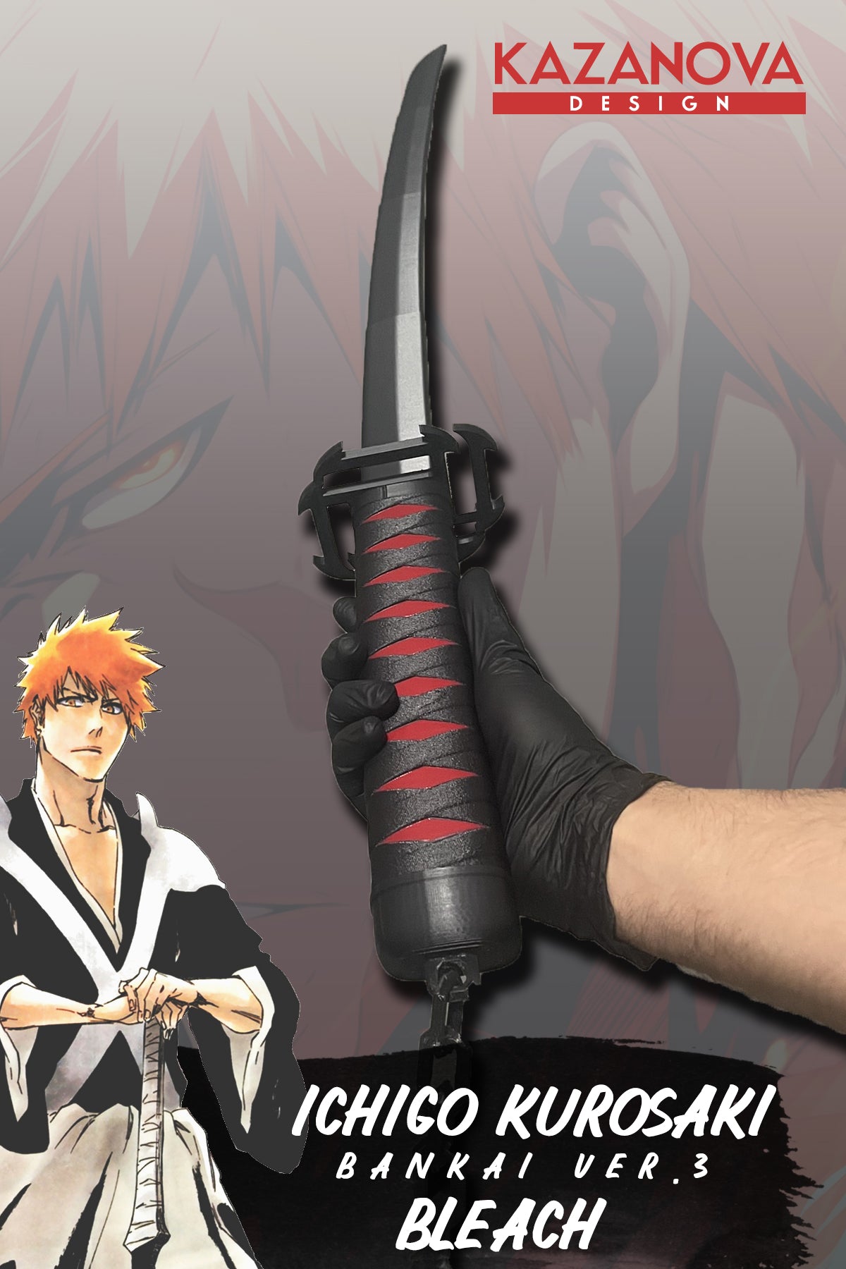 - Minimalist ve Çarpıcı Tasarım: Katana, siyah ve kırmızı detaylarıyla Ichigo’nun Bankai formunun hızını, gücünü ve kararlılığını yansıtıyor.